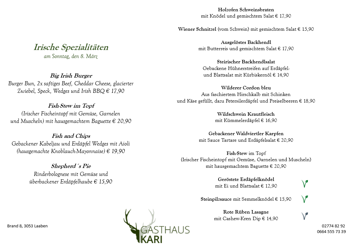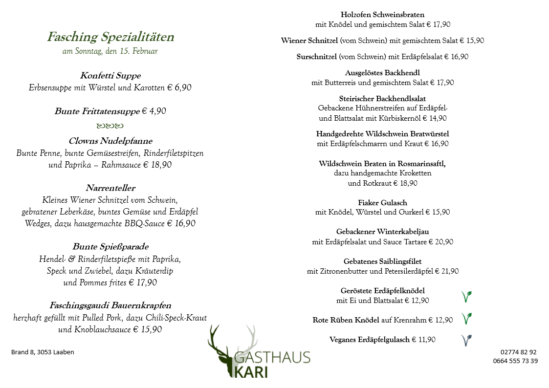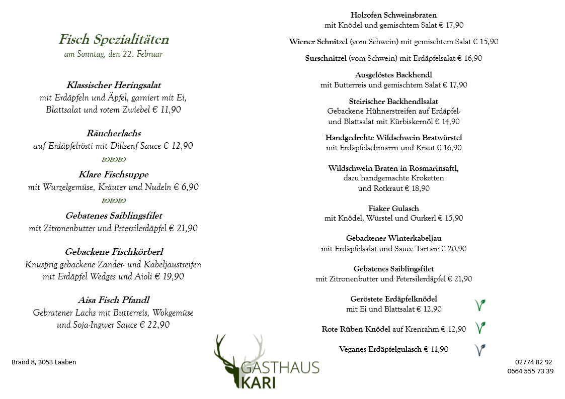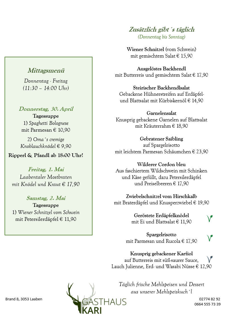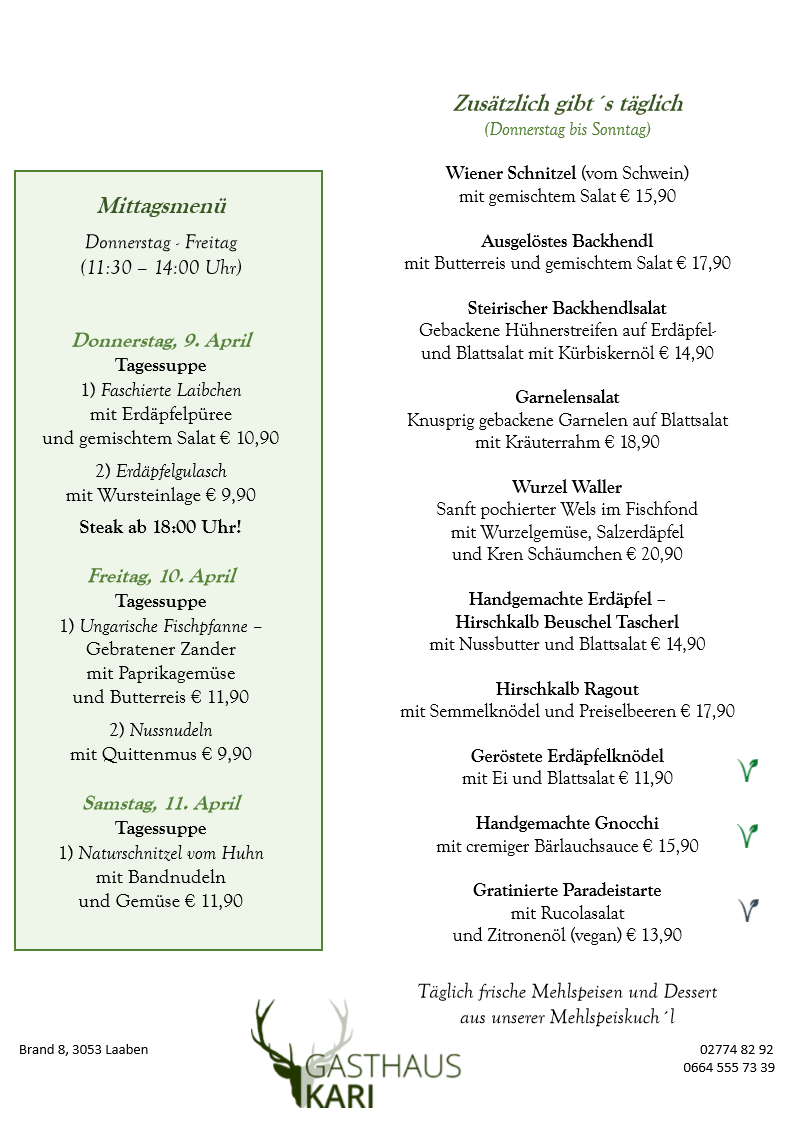 Unser Fleisch beziehen wir ausschließlich von den örtlichen Bauern, dem Fleischhauer Stefan Girsch aus der Nachbarortschaft und aus eigener Jagd.